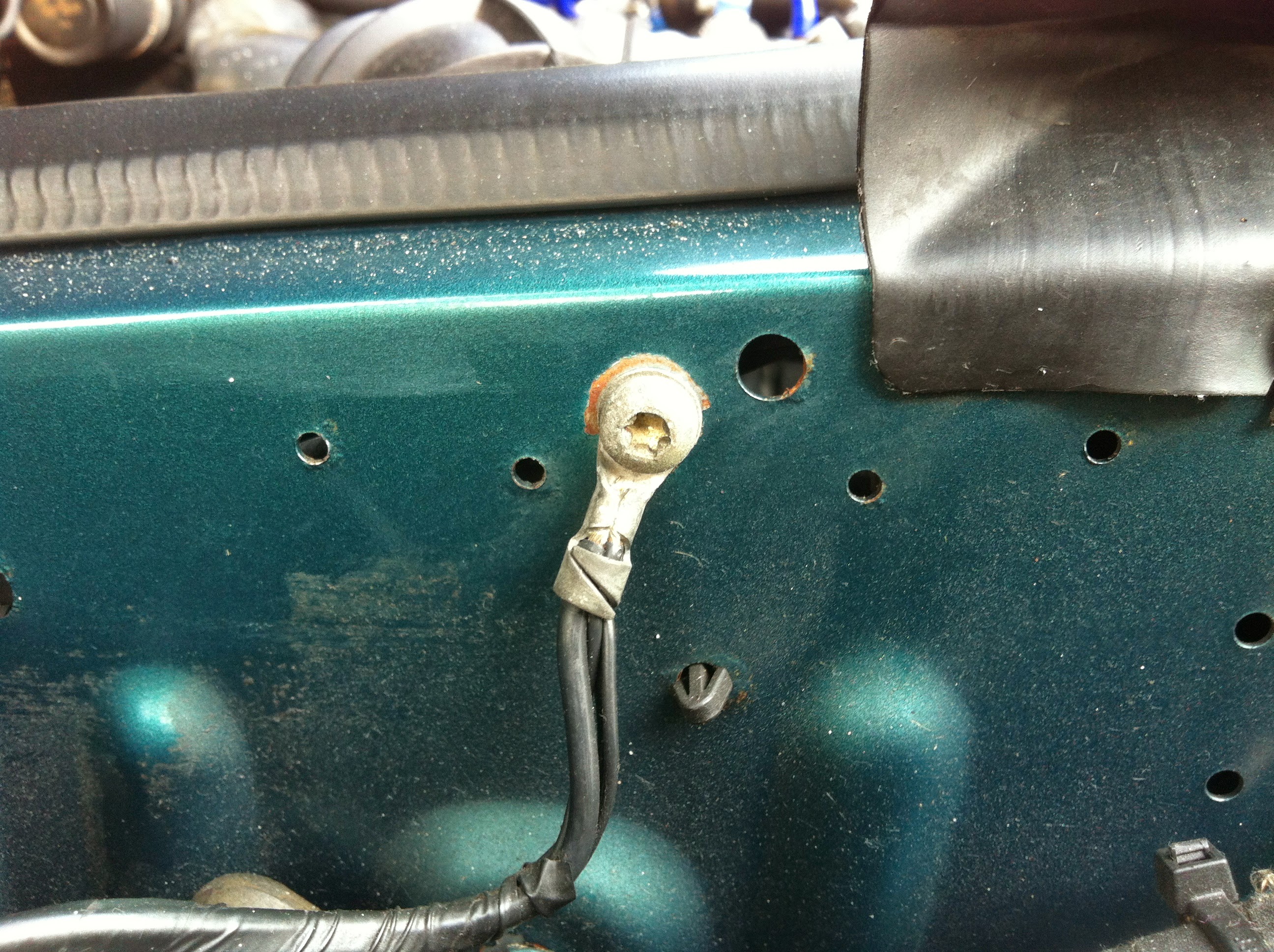 Verroeste of anderszins aangetaste massapunten zijn funest voor de betrouwbaarheid van elektrische systemen (inclusief bijv. brandstofinjectie). Het belangrijkste massapunt om visueel te inspecteren zit rechtsvoor onder de radiateur.